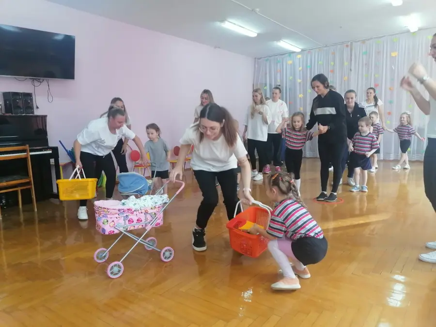 В средних группах прошёл спортивный праздник, в котором активное участие приняли мамы наших воспитанников. Взрослые и дети с удовольствием пели песни, рассказывали стихи, участвовали в различных конкурсах. В конце праздника все участники получили сладкие призы и дипломы.